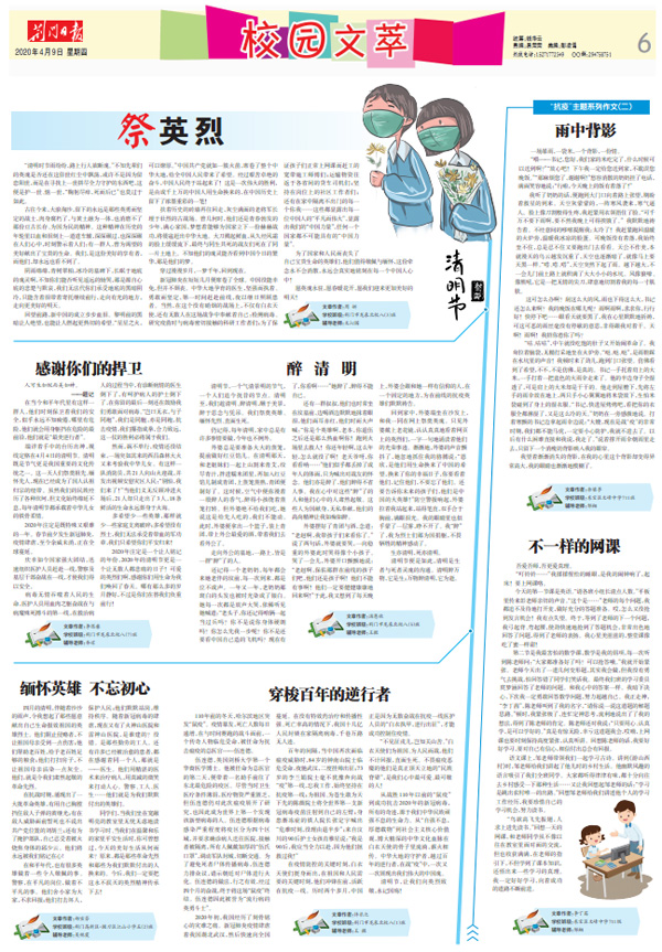 4月9日的《荆门日报》刊登了我校学子的优秀文章,以表哀思!